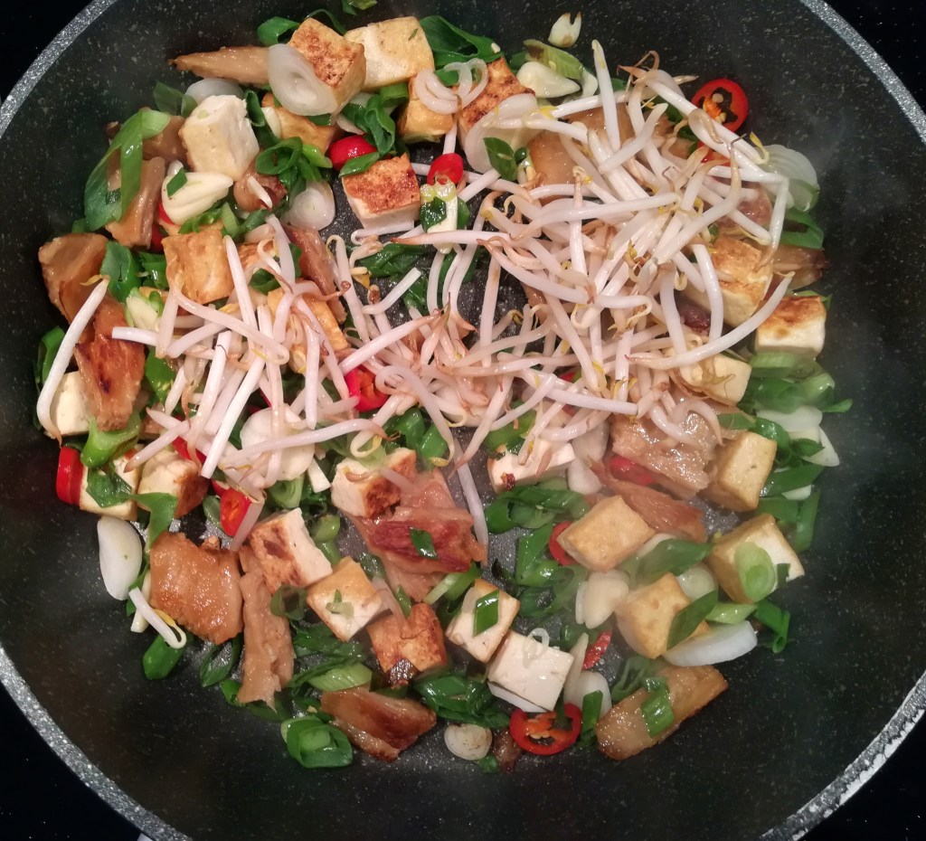 Wil je de tofu écht heel knapperig bakken? Wentel de blokjes dan in de maizena en bak ze in wat meer olie, voordat je de kipstuckjes toevoegt. Je kunt het gerecht geheel vegetarisch maken door de vissaus weg te laten en wat meer sojasaus toe te voegen (de smaak wordt daar uiteraard wel heel anders door).