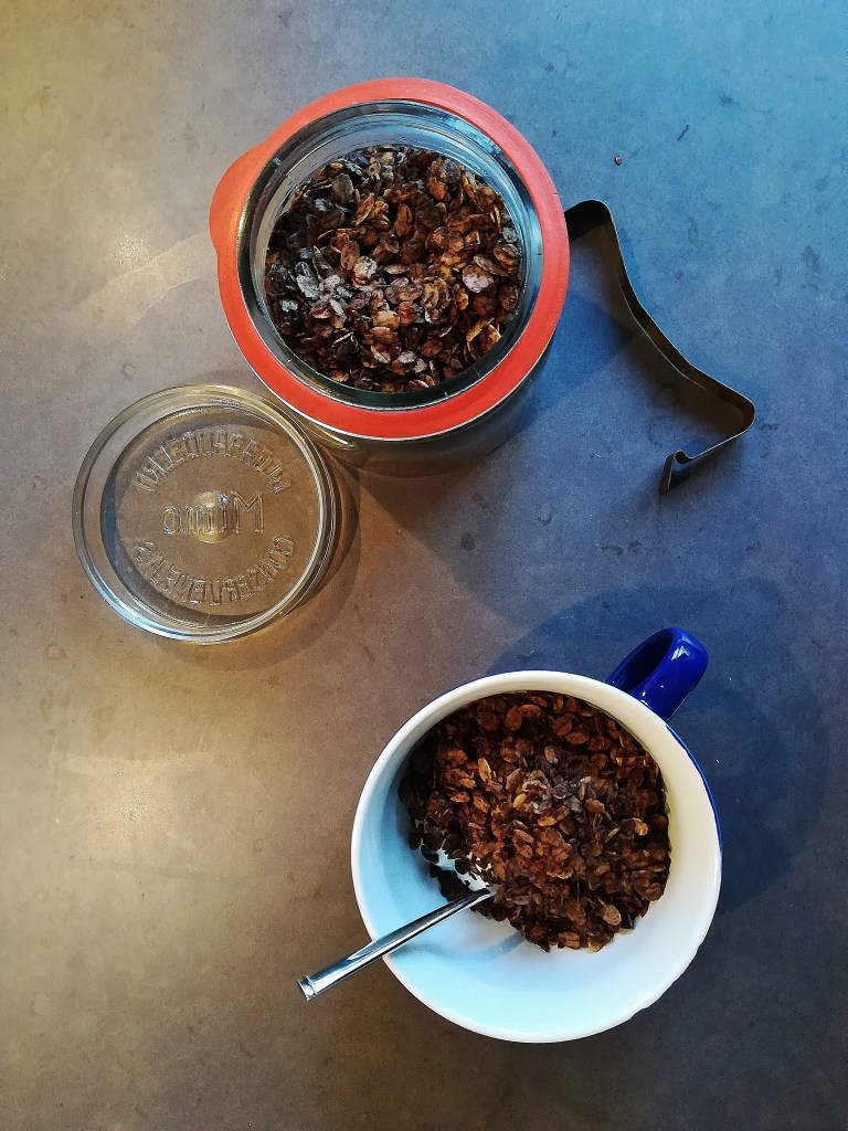 Een tijdje geleden maakte ik mijn eigen kokos-chocoladegranola. Hij was heel lekker, maar ik vond toch dat het nog wel beter moest kunnen. De tweede keer dat ik hem maakte, voegde ik daarom extra kokos en cacaopoeder toe om de smaak intenser te maken. En omdat ik toen toch bezig was, voerde ik nog wat aanpassingen door. En zie hier: coco-chocogranola versie 2.0!