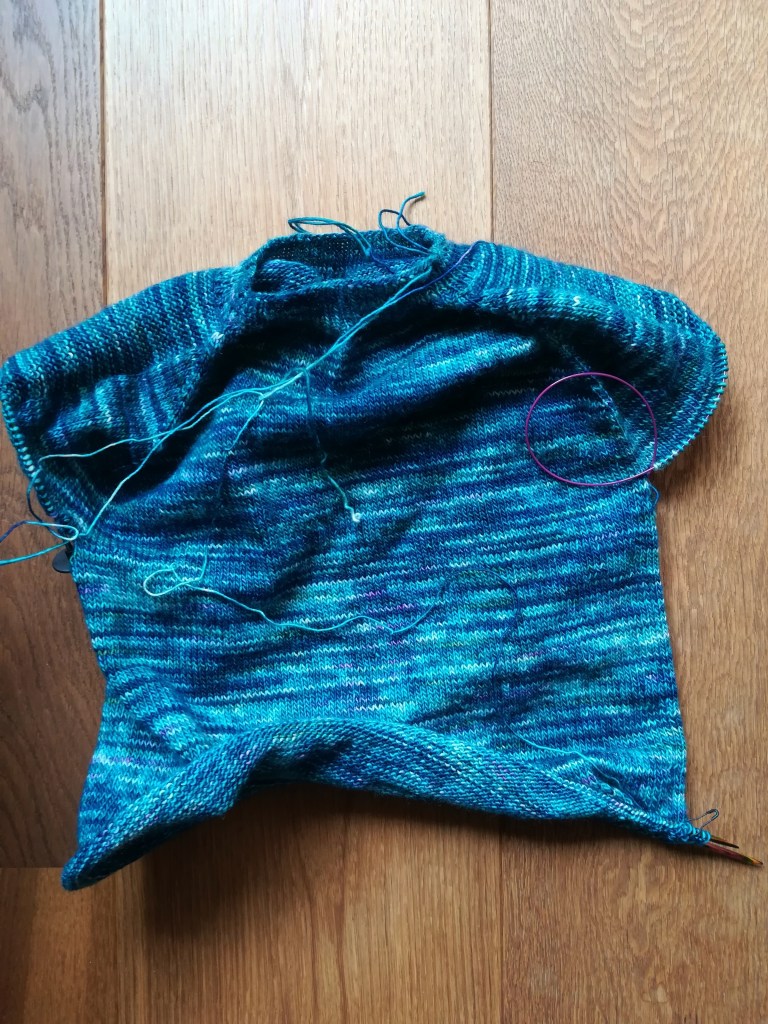 Mijn Flax light begint ondanks de wisselende motivatie toch al aardig op te schieten. Op dit moment is het lijfje bijna af, en daarna kan ik aan de mouwen beginnen. Bij het passen merkte ik wel dat hij iets kleiner is uitgevallen dan de bedoeling was; ik heb nu blijkbaar een aansluitend model gemaakt. Ik verwacht wel dat hij nog aardig zal groeien bij het weken en opspannen. Maar hij wordt hoe dan ook mooi!