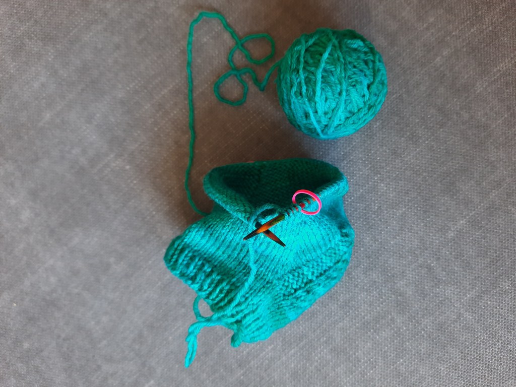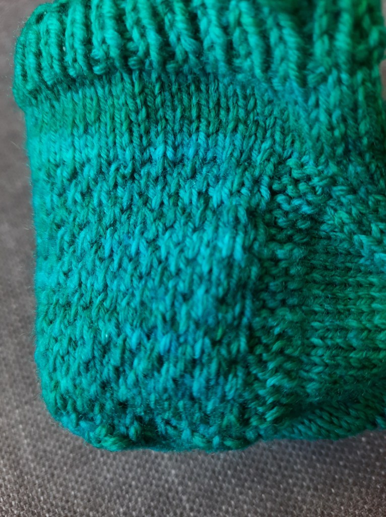 Ik had eerder al een paar gehaakte sokken laten zien waar ik niet tevreden over was. Ik heb nu één van de sokken uitgehaald en gebruik de wol (een heel mooie, handgeverfde van Sticks & Cups) nu voor gebreide sokken. Ik gebruik hiervoor het gratis patroon My Favorite Vanilla Socks van Meaghan Schmaltz. Wel ben ik een naaldmaat naar beneden gegaan (2,5 mm) en maak ik de sokken een maatje groter ter compensatie. Van tevoren leek sokken breien me een ingewikkelde operatie, maar nu ik eenmaal bezig ben valt het me ontzettend mee. Ja, hier kan ik zeker aan wennen! Ik kijk er nu al naar uit om mijn eerste sok met een patroontje te maken.